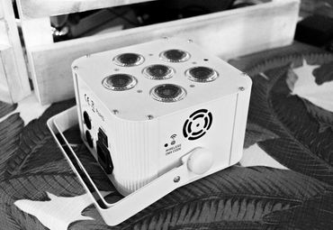 All uplights are battery powered LED lamps that can light up any space. They are controlled remotely from an iPad on their own, exclusive Wi-Fi network. This allows clients to choose any color they like. Our lights also have several other features that include, but are not limited to, strobe, fades, chases, and sound active mode.